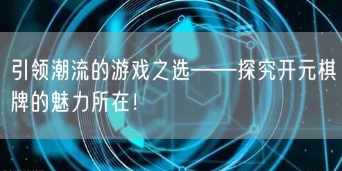 引领潮流的游戏之选——探究开元棋牌的魅力所在!